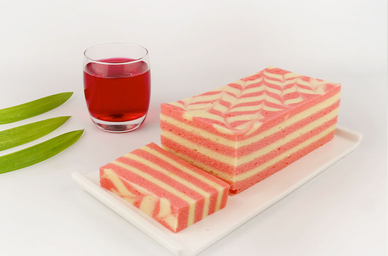 Siapkan loyang 20x20x8 poles margarin dan dialasi kertas roti, tuang adonan bagian putih 150 g, lalu kukus selama 7 menit hingga matang